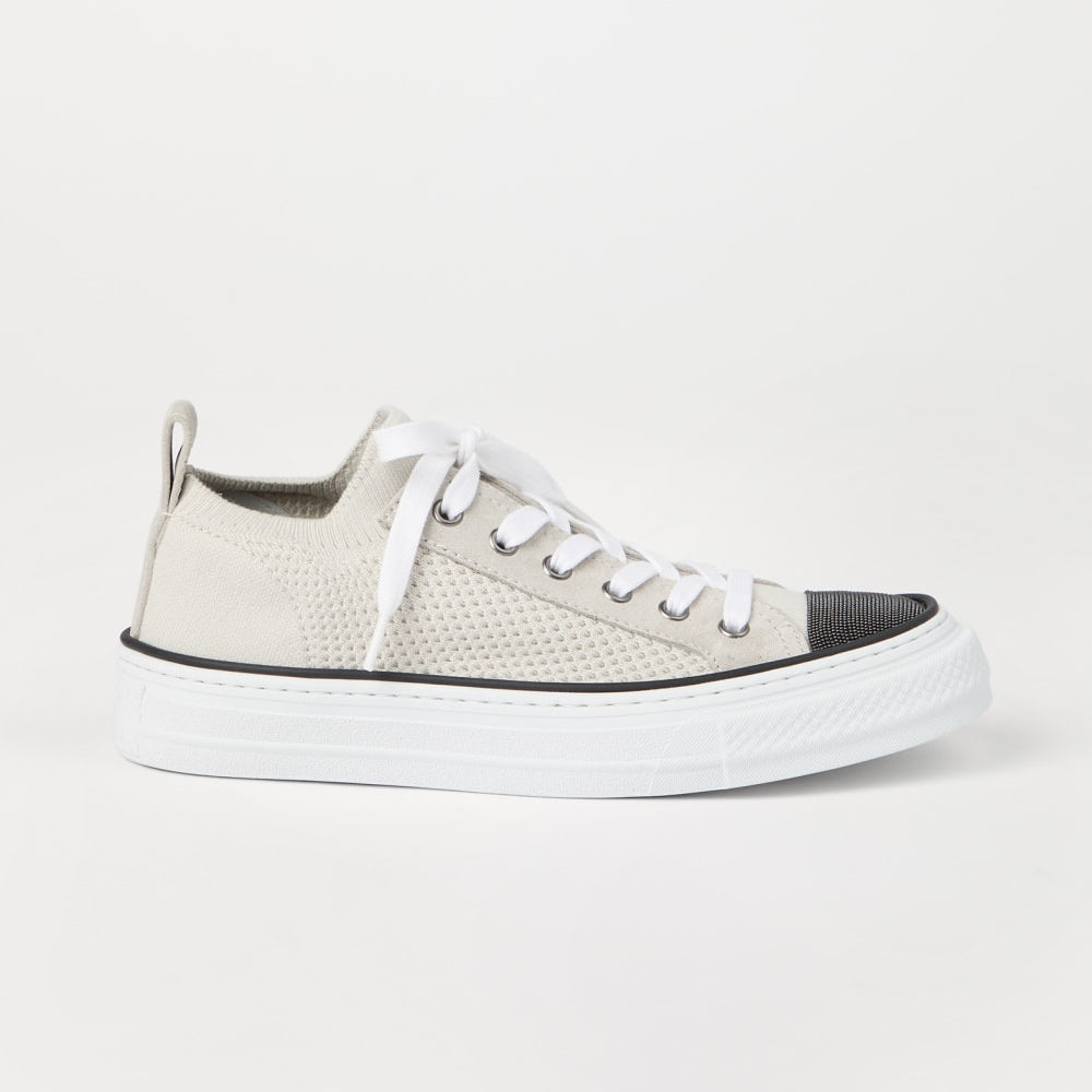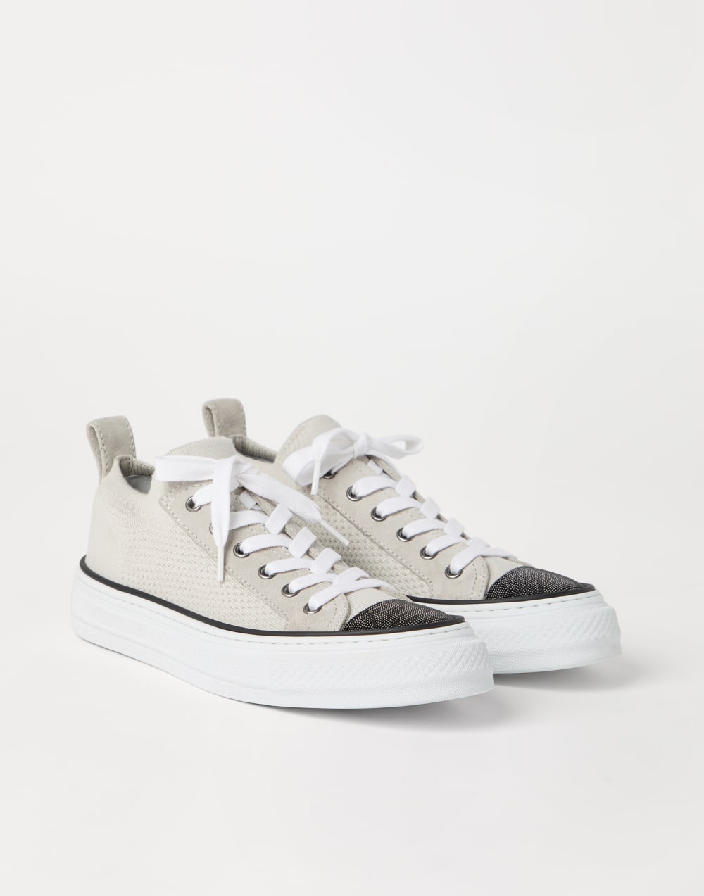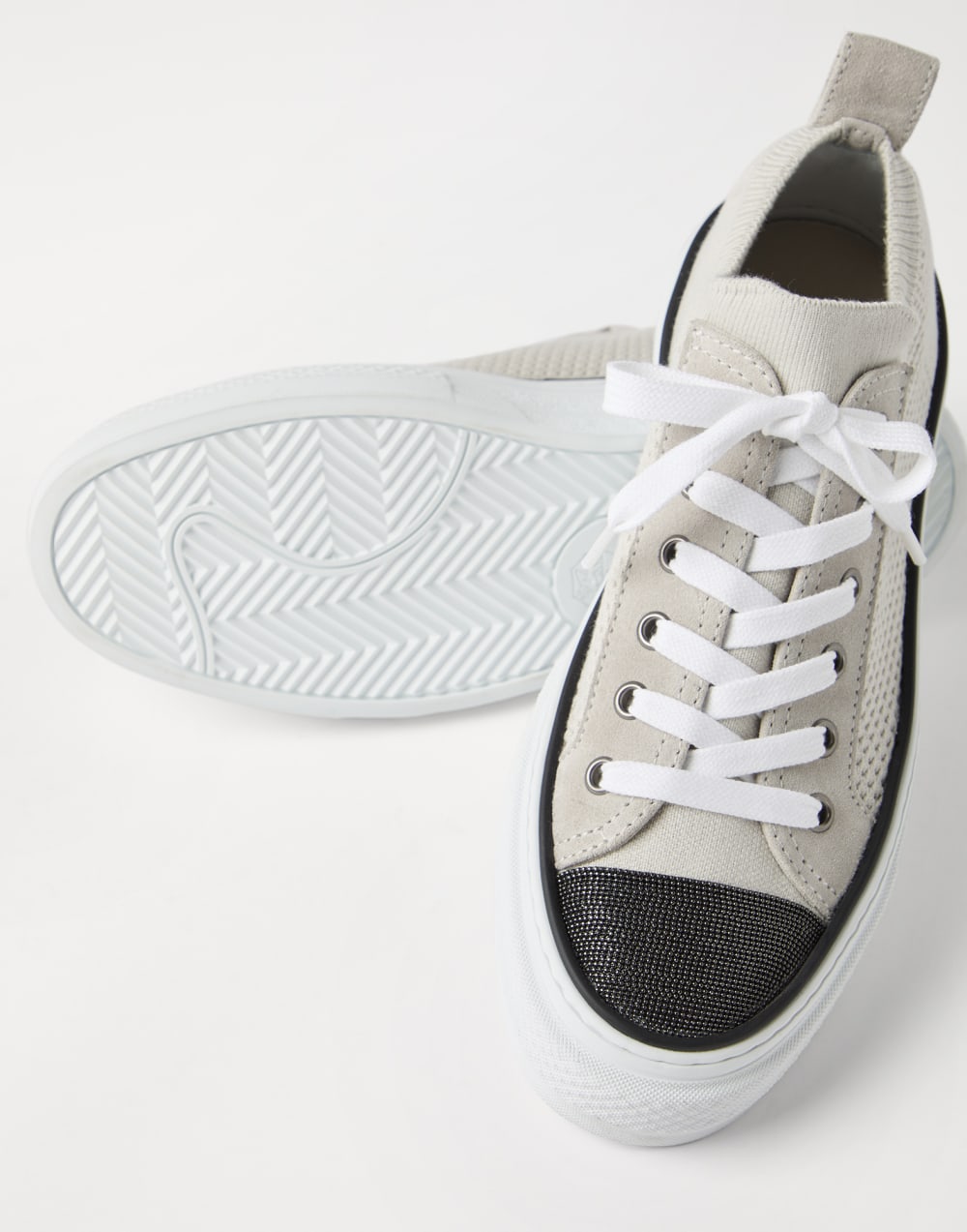 The summery feel of cool cotton knit is paired with refined suede with a soft, velvety texture. The cotton-blend lining and ultra-lightweight rubber sole provide the footwear with extraordinary comfort.