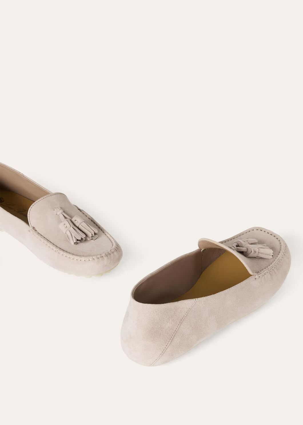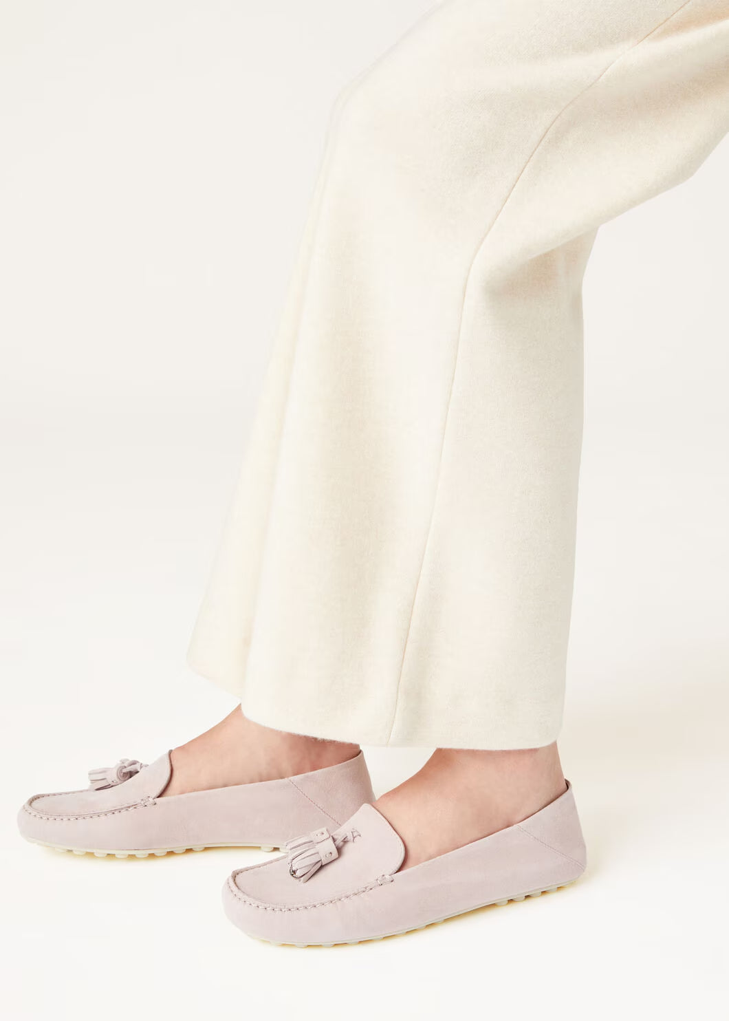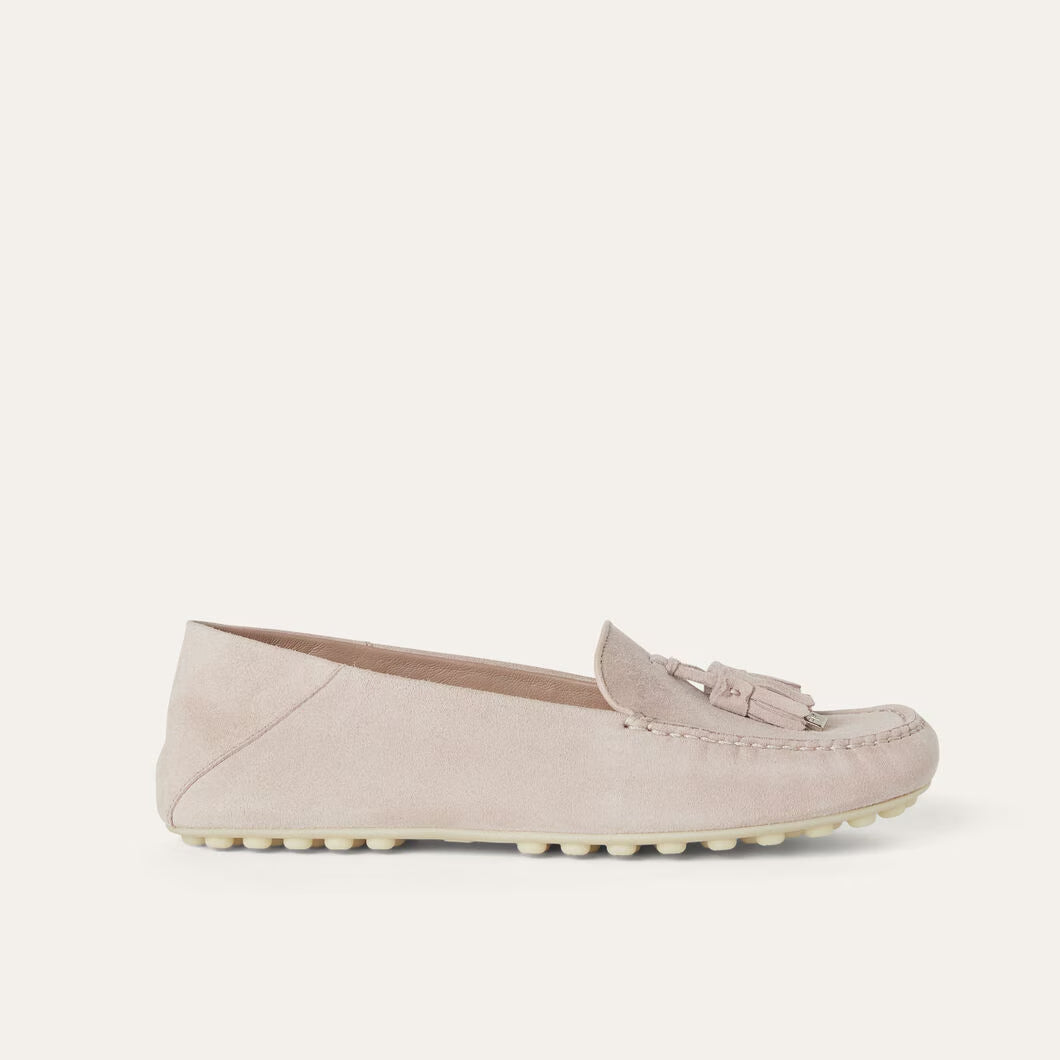 loafers made from soft made suede with water-repellent finish. Their informal laid-back style is enhanced by rubber soles,? logo rubber pads and sabot-style collapsible heels. This lightweight, flexible style is enhanced My Charms tassels.