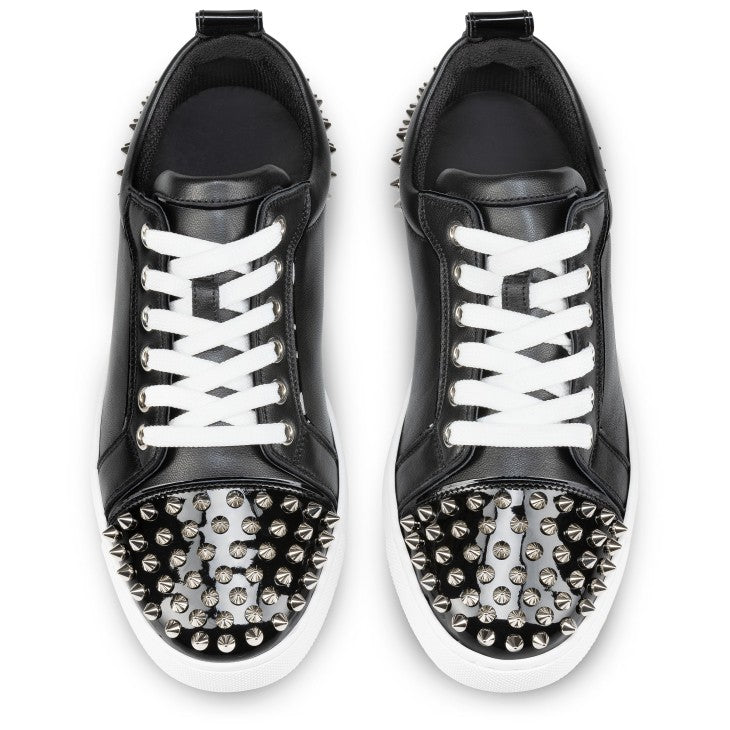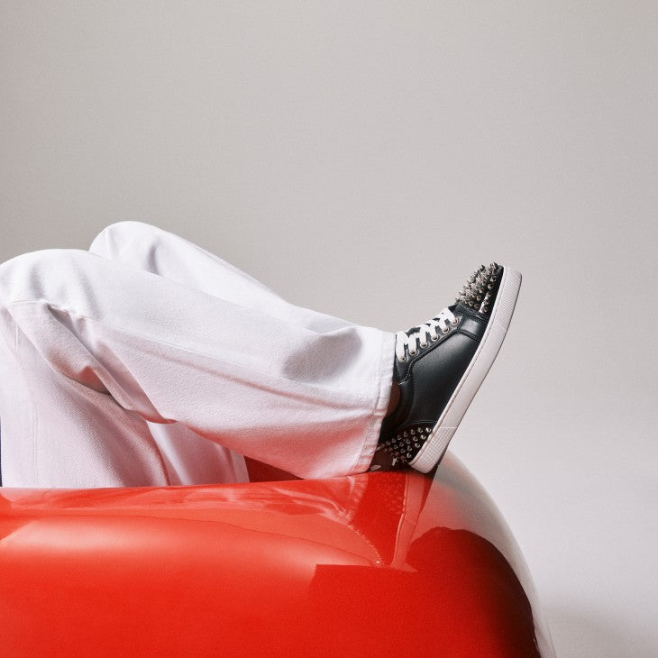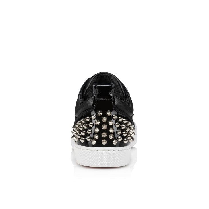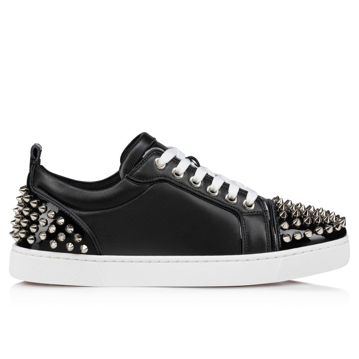 The Louise Junior Spikes low-top sneaker is inspired by the world of basketball and is set on a rubber sole. Blending elegant and sporty lines, this iconic model is entirely crafted from black nappa leather. Enhanced with delicate finishing touches, it features signature Maison metal spikes on the back and tip.