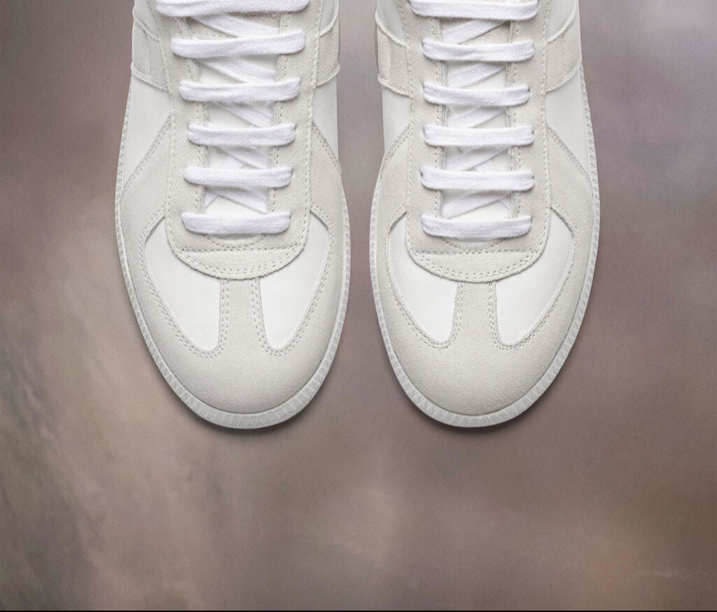 sneakers in nappa leather and suede with a honey sole.iconic sneakers are inspired by Austrian sports shoes from the seventies. Details on the pairs are continually reworked in line with the season's inspirations.