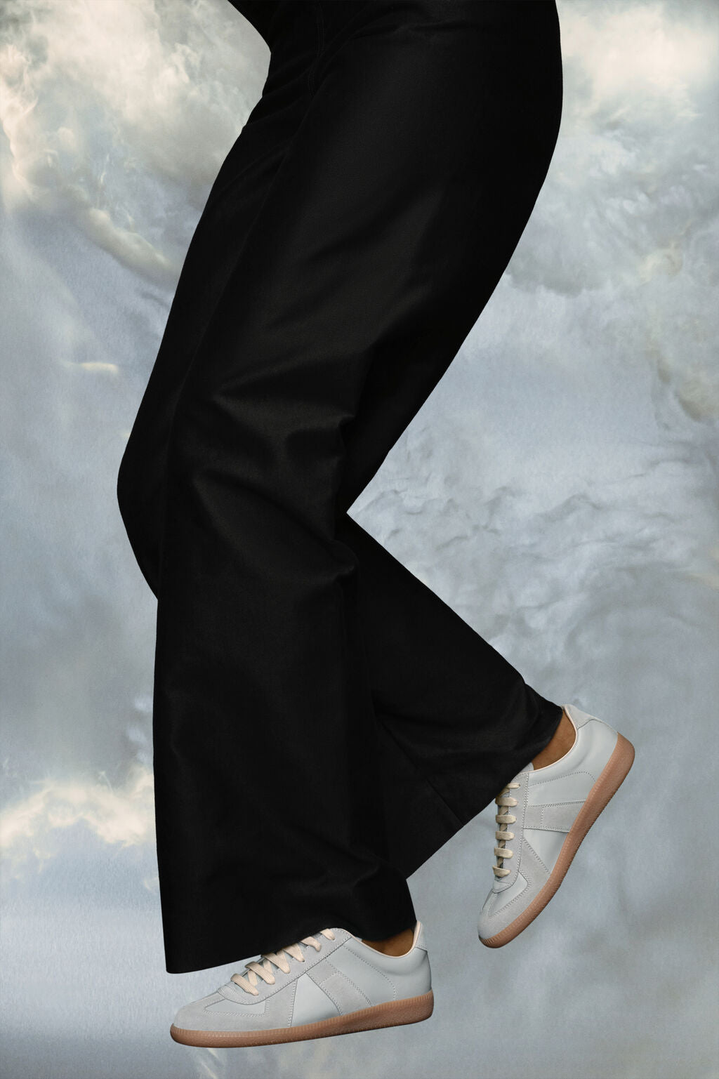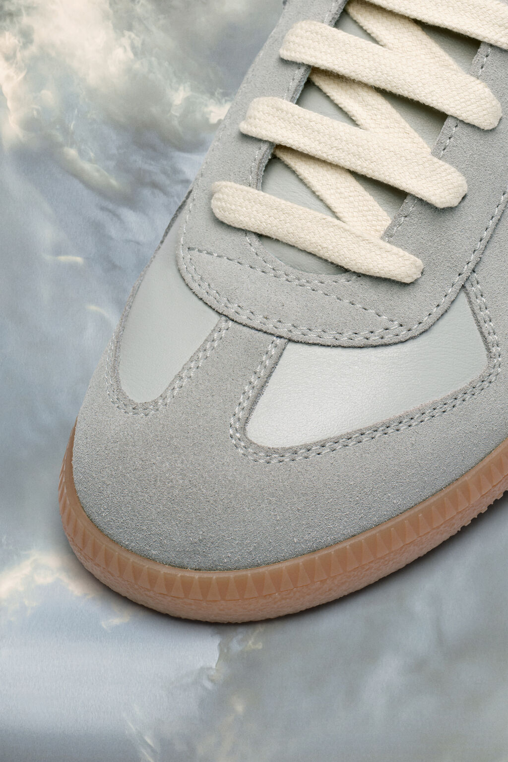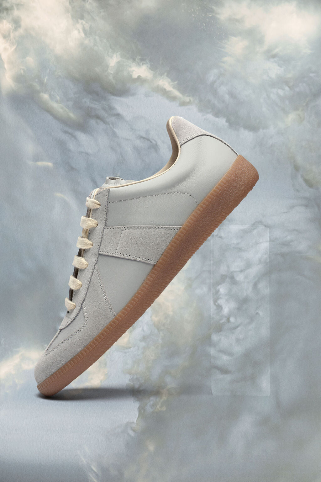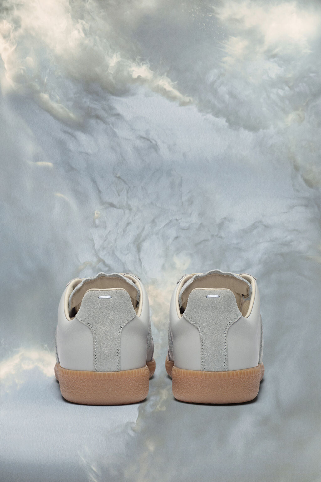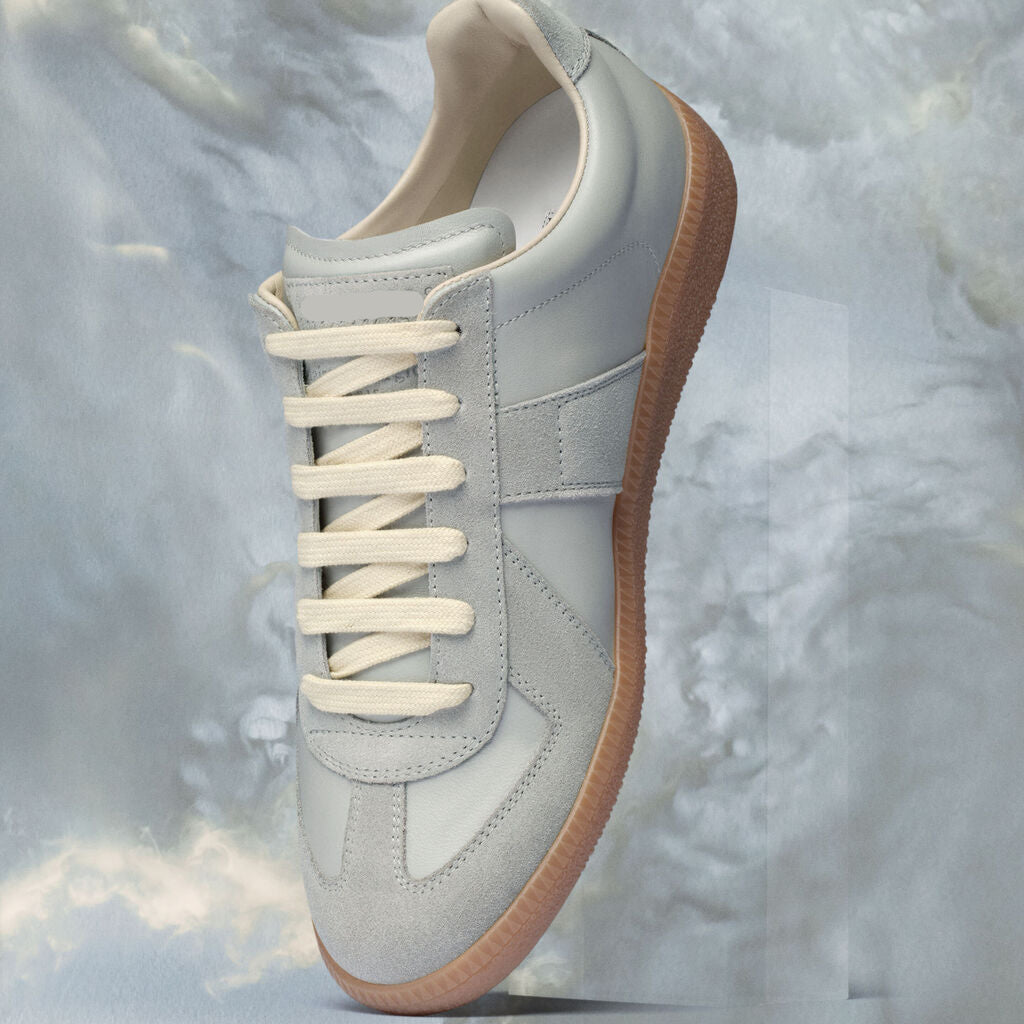 sneakers in nappa leather and suede with a honey sole. The Maison's iconic? sneakers are inspired by Austrian sports shoes from the seventies. Details on the pairs are continually reworked in line with the season's inspirations.