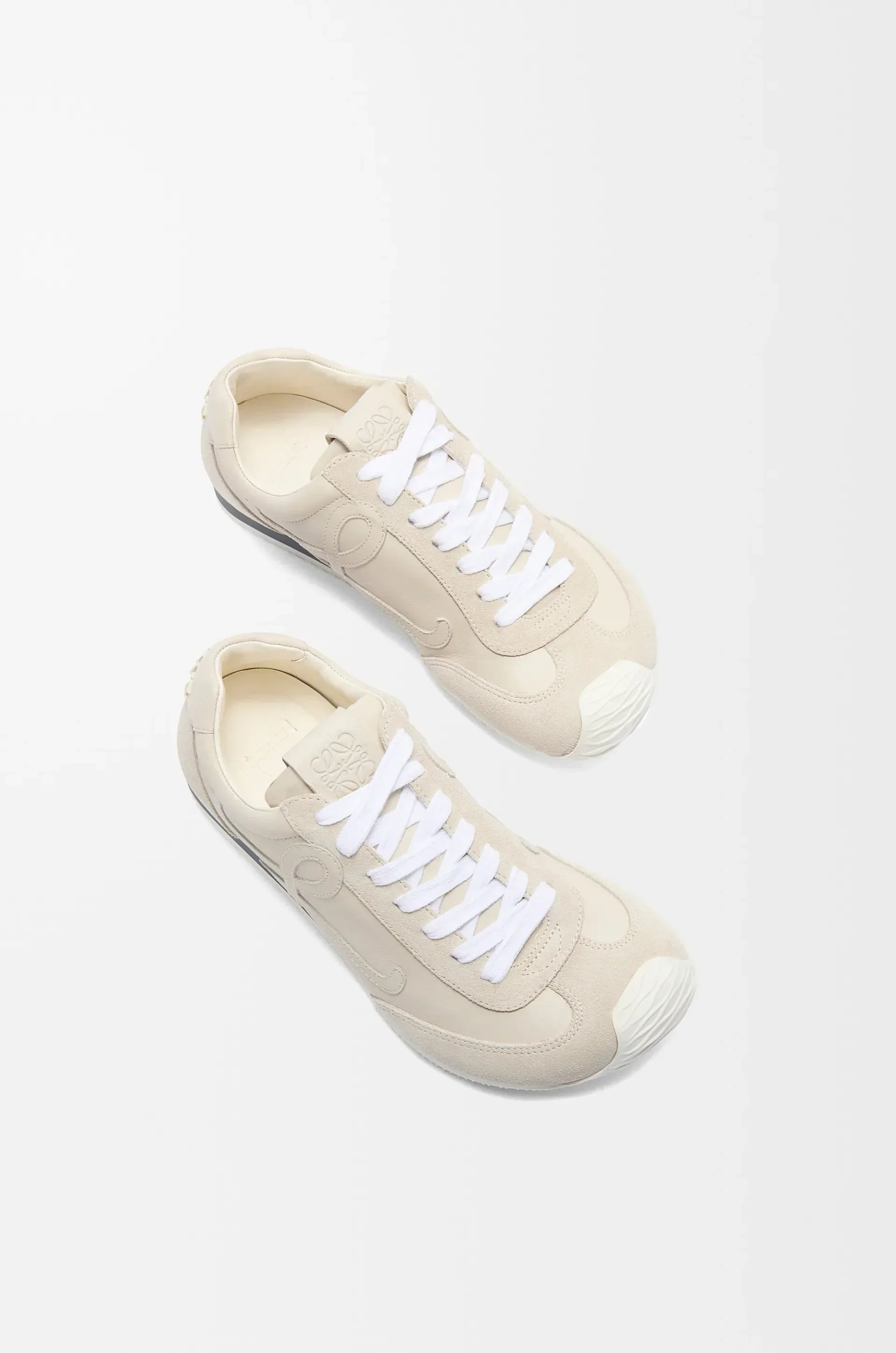 Soft cowhide leather sneakers, asymmetric toe design, sock-like internal structure, light rubber outsole extends to the toe.
