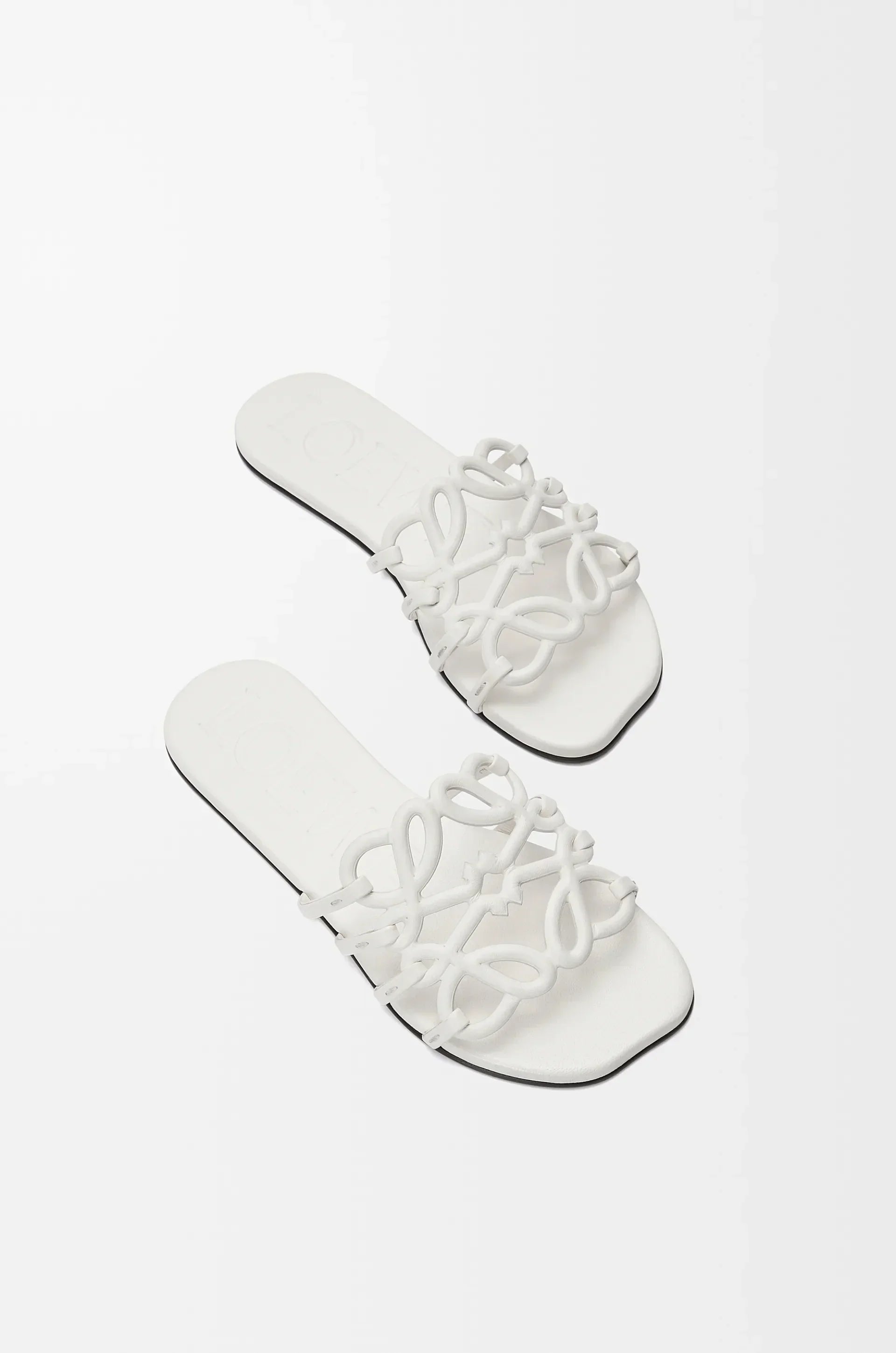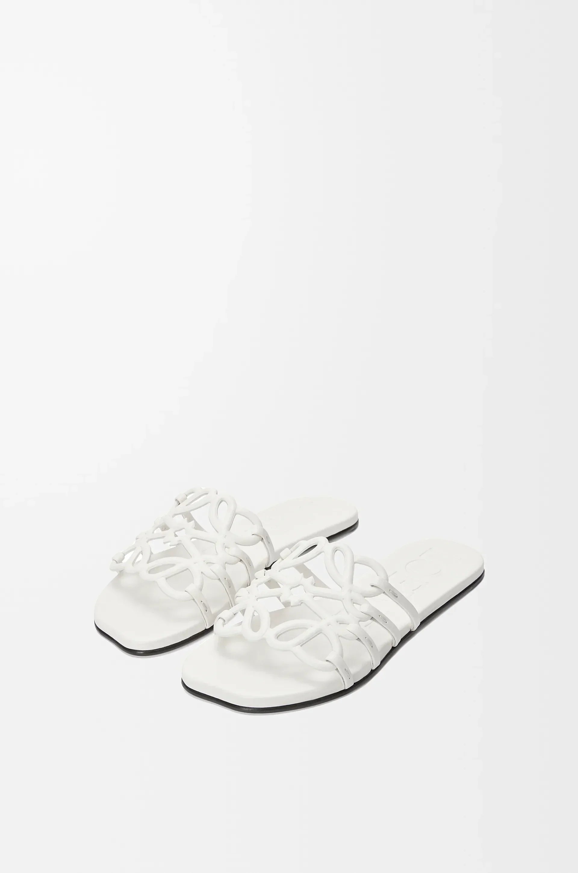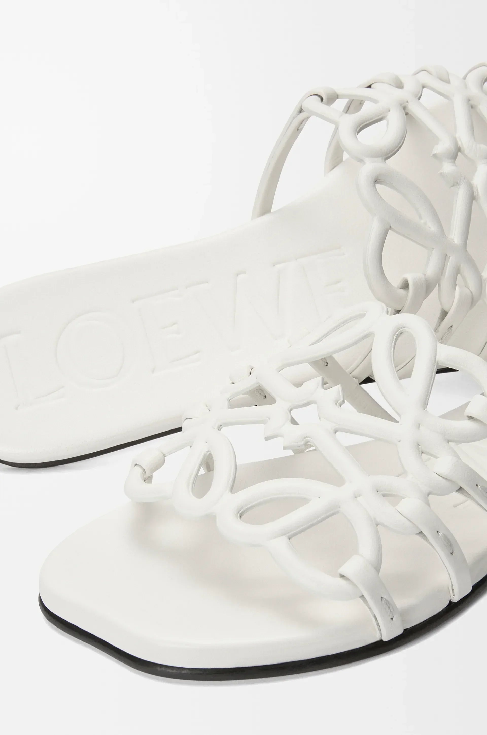 Soft cowhide leather sandals, cutout Anagram upper, hand-painted trim and hand-sewn seams.
