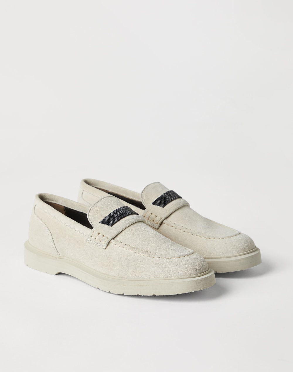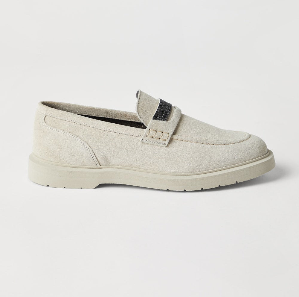 Suede penny loafer white