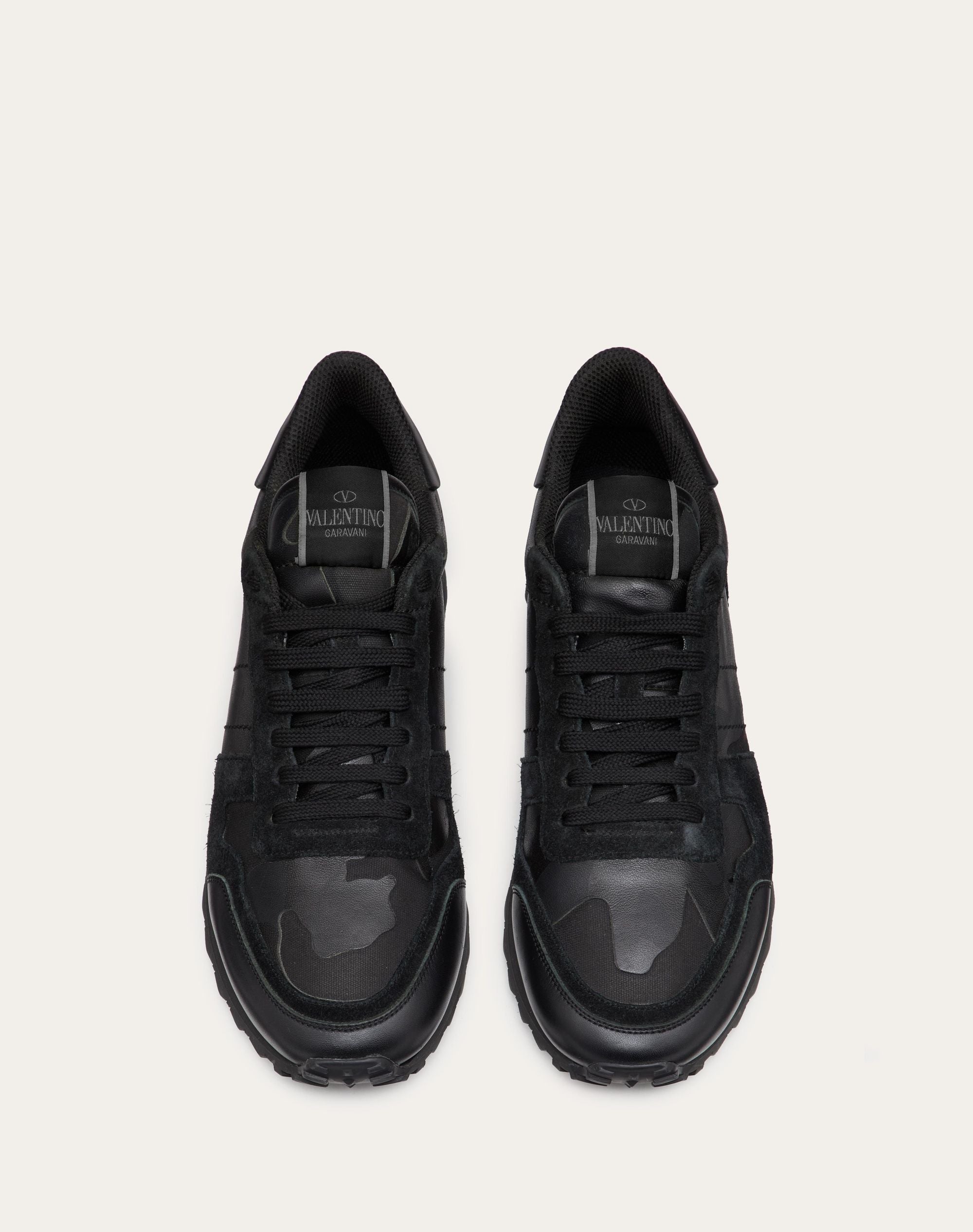 Garavani Camouflage Noir Rockrunner fabric and nappa leather sneaker.