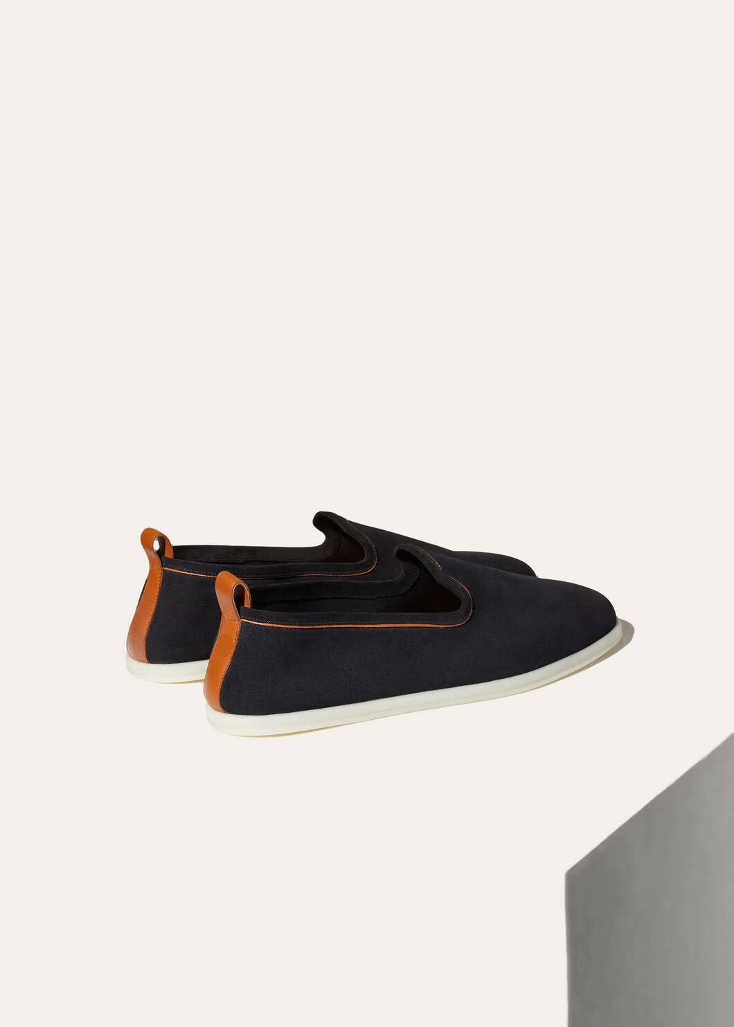 Inspired by classic slipper loafers, this style combines the luxury of artisanal craftsmanship with the versatility of iconic footwear. created these lightweight, flexible suede loafers by selecting the most prized part of the hide and crafting it to achieve the ideal softness and thickness. Thanks to natural-colored leather collapsible heels and slightly elongated toes, they evoke the iconic style.
